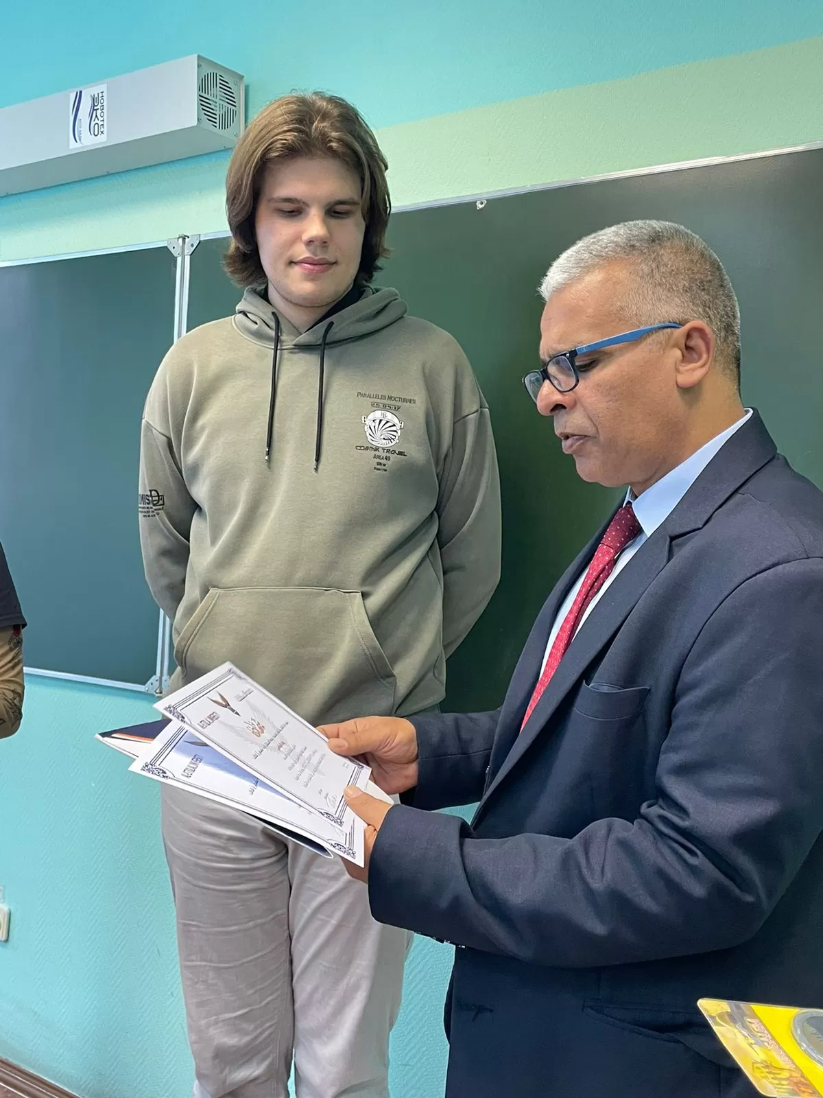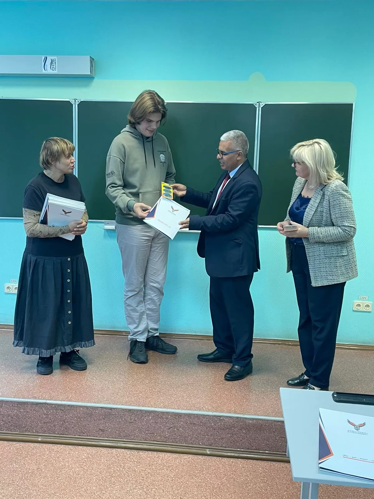وحضر حفل التخريج د. محمد نجاجرة مدير مركز الشاعر سيرجي يسينين للغة والثقافة الروسية، وأ.د. إيرينا مينيكوفا عميدة كلية القانون والعلاقات الدولية في جامعة الجنوب الغربي الروسية، إلى جانب عدد من أعضاء الهيئة الأكاديمية في الكلية.