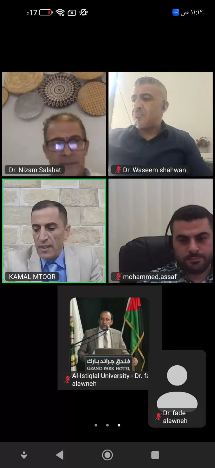 ناقشت كلية الدراسات العليا والبحث العلمي في جامعة الاستقلال اليوم الأربعاء رسالة ماجستير الكترونياً للطالب والموسومة “ دور تلفزيون فلسطين الرسمي في تعزيز قيم السلم الاهلي من وجهة نظر طلبة الاعلام في جامعات جنوب الضفة الغربية”