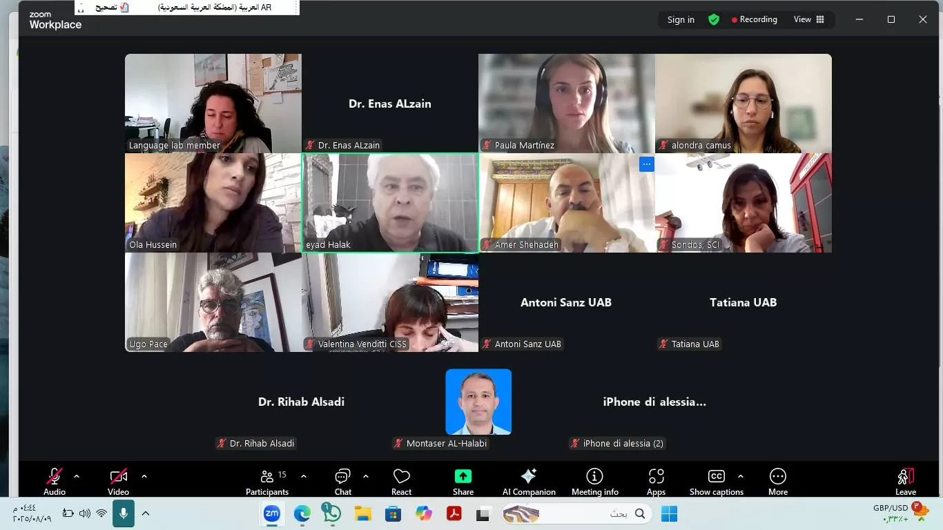 وشارك في الاجتماع ممثلون عن جامعة القدس – أبو ديس (الدكتورة علا حسين – منسقة المشروع في الجامعة، والدكتور إياد الحلاق، والدكتور عمر الريماوي)، وجامعة الأزهر – غزة (الدكتور منتصر الحلبي)، إضافة إلى ممثلين عن الجامعات الأوروبية الشريكة في المشروع.