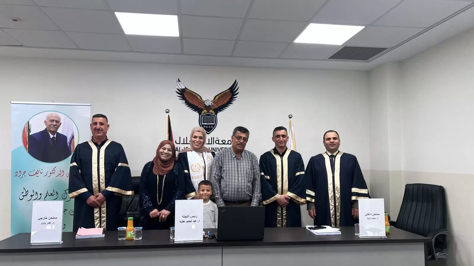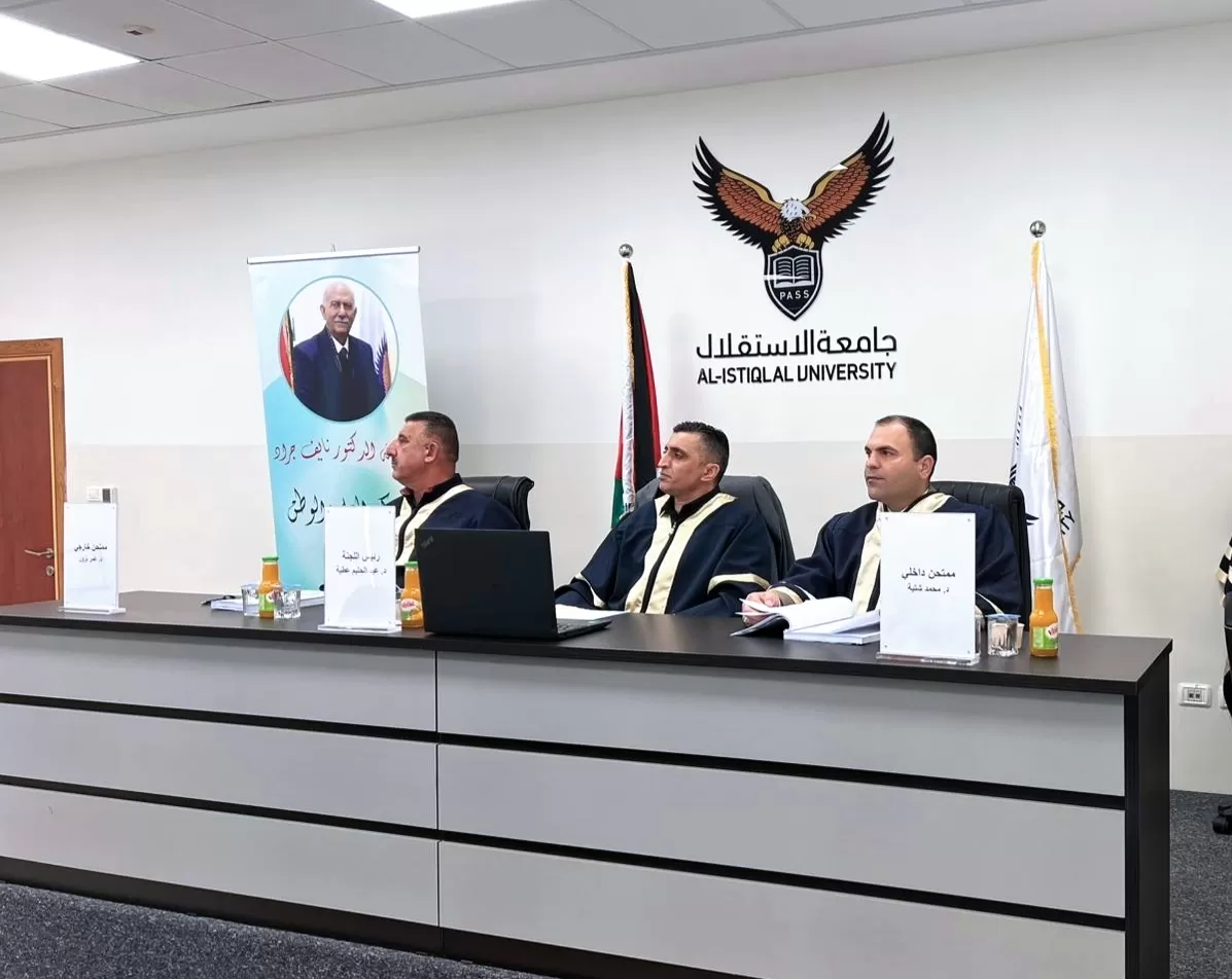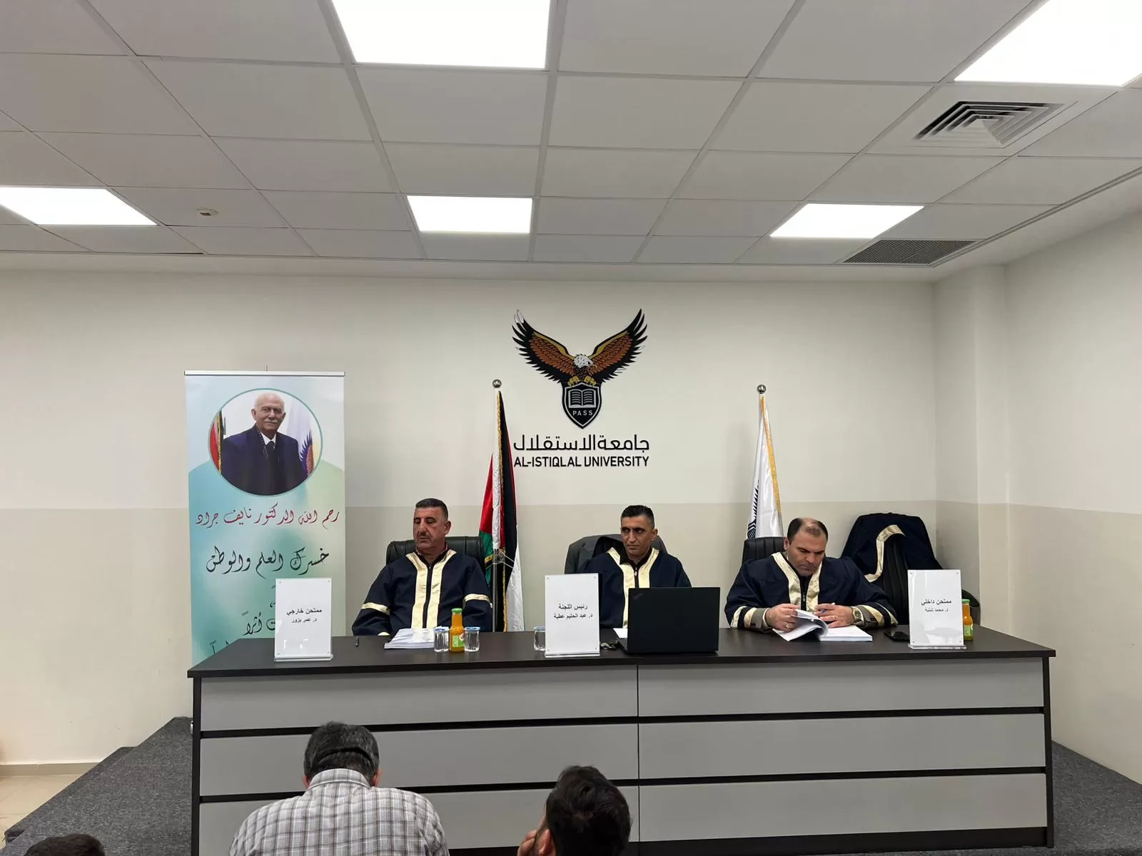 وتكونت لجنة المناقشة من د. عبد الحليم عطية (مشرفاً )، ود. محمد شتية (ممتحناً داخلياً)، و د. عمر البزور (ممتحناً خارجياً).
