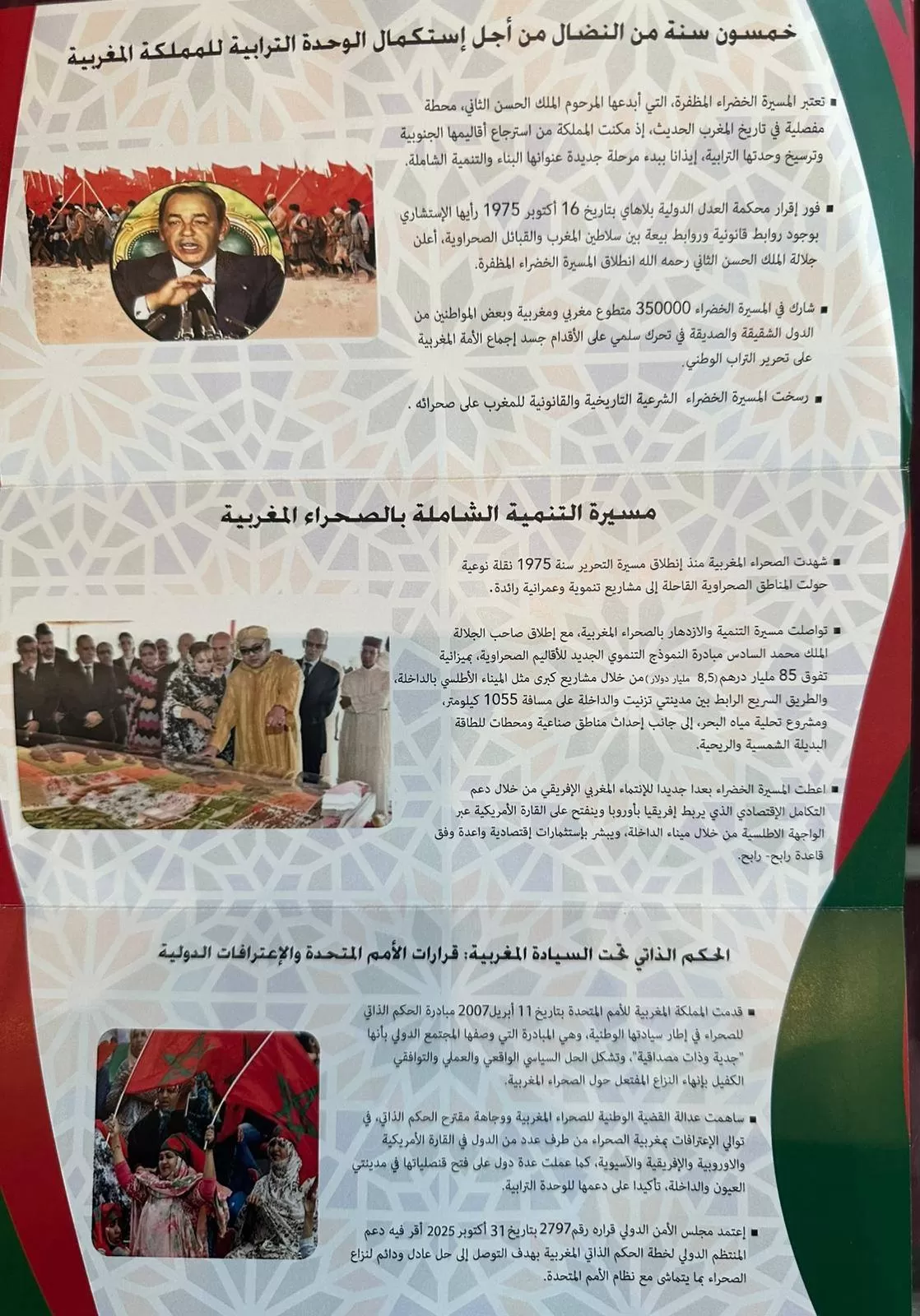 وخلال الاحتفال، أكد سعادة سفير المملكة المغربية لدى دولة فلسطين عبد الرحيم المزيان، أن المسيرة الخضراء التي أبدعها جلالة الملك الراحل الحسن الثاني رحمه الله، تعد محطة تاريخية مفصلية في مسار الكفاح الوطني المغربي، إذ مكنت المملكة من استرجاع أقاليمها الجنوبية وترسيخ وحدتها الترابية، إيذانًا ببدء مرحلة البناء والتنمية الشاملة.