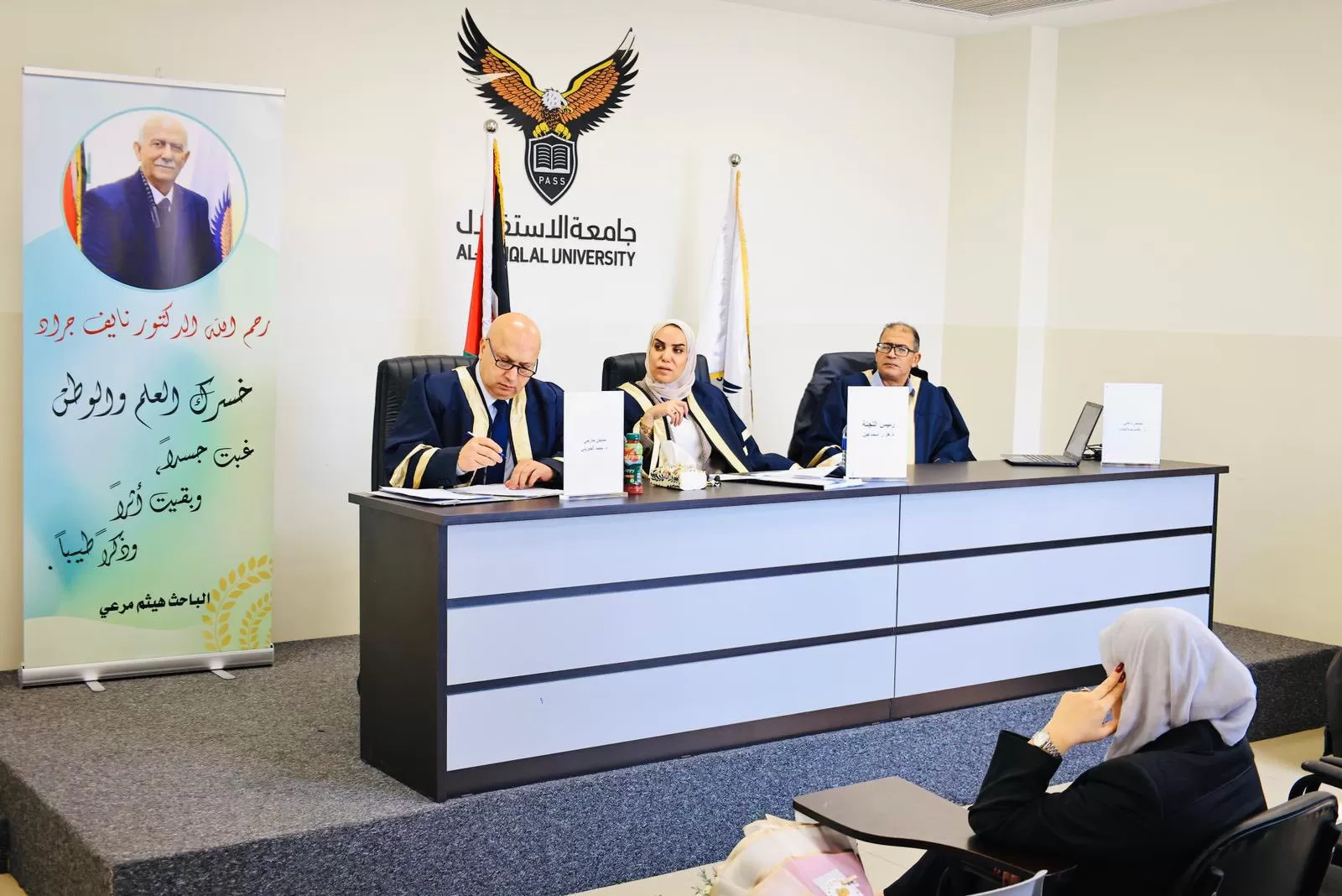 ناقشت كلية الدراسات العليا والبحث العلمي في جامعة الاستقلال رسالة ماجستير تقدّم بها الطالب مراد محمود خلاف- برنامج الدراسات الفلسطينية والتي جاءت موسومة ب: “أثر العامل الديني في الخطاب السياسي لحركة حماس”.