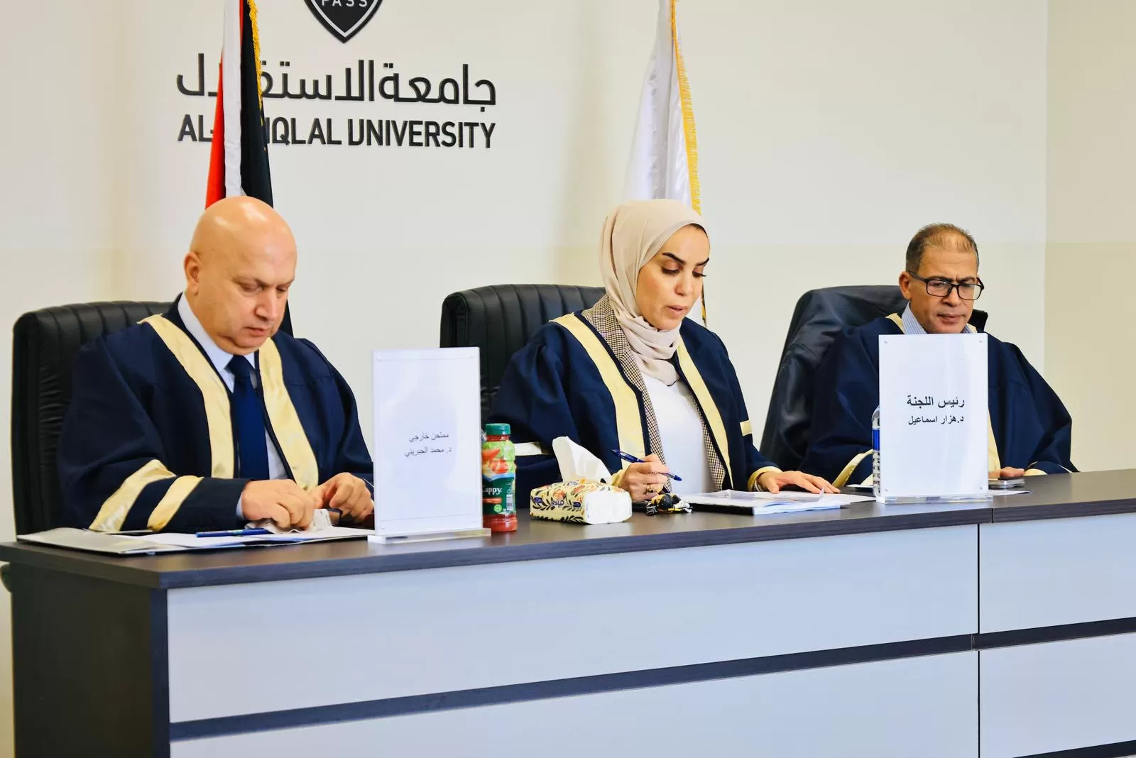 وتكونت لجنة المناقشة من د. هزار آسماعيل مشرفًا على الرسالة، د. نظام صلاحات ممتحنًا داخليًا، د. محمد جبريني ممتحنًا خارجيًا.
