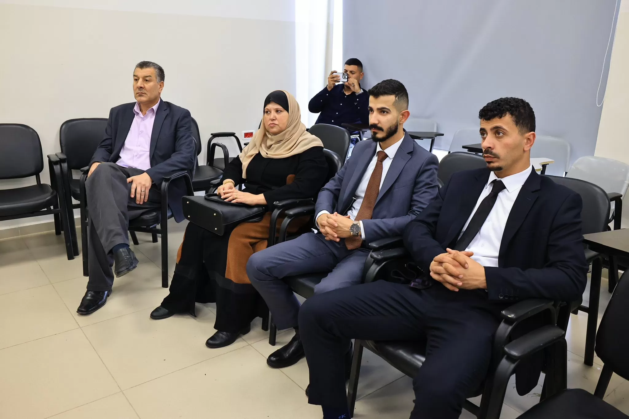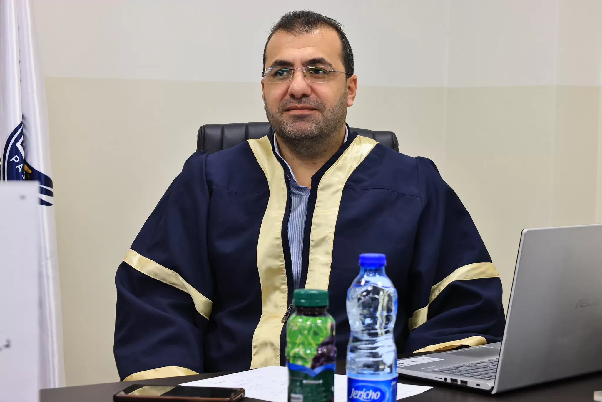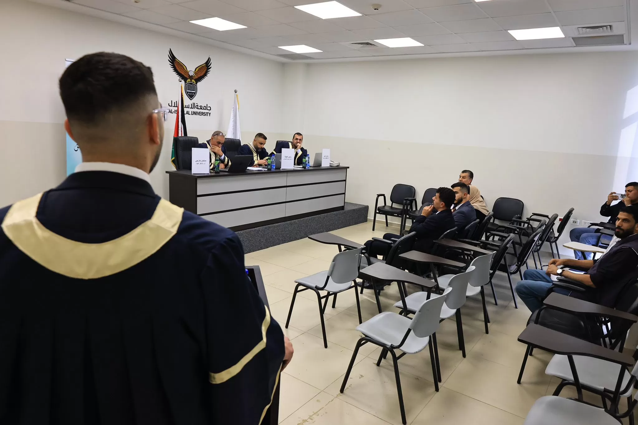 وتكونت لجنة المناقشة من د.عبد الرحمن سلوادي مشرفًا على الرسالة، د. عبّد اللطيف أبو عودة ممتحنًا داخليًا، أ.د. شاهر عبيد ممتحنًا خارجيًا.