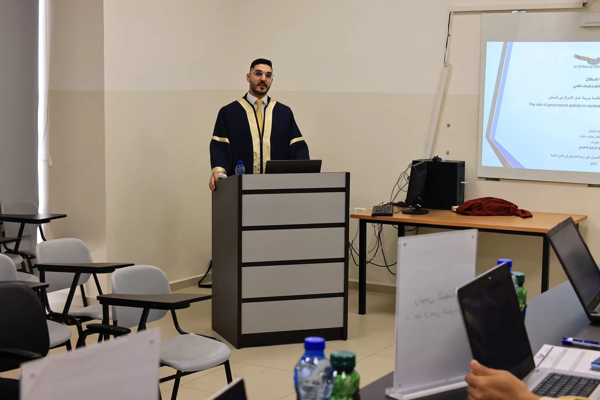 مناقشة رسالة ماجستير حول دور السياسات الحكومية في مكافحة جريمة غسيل الأموال في فلسطين