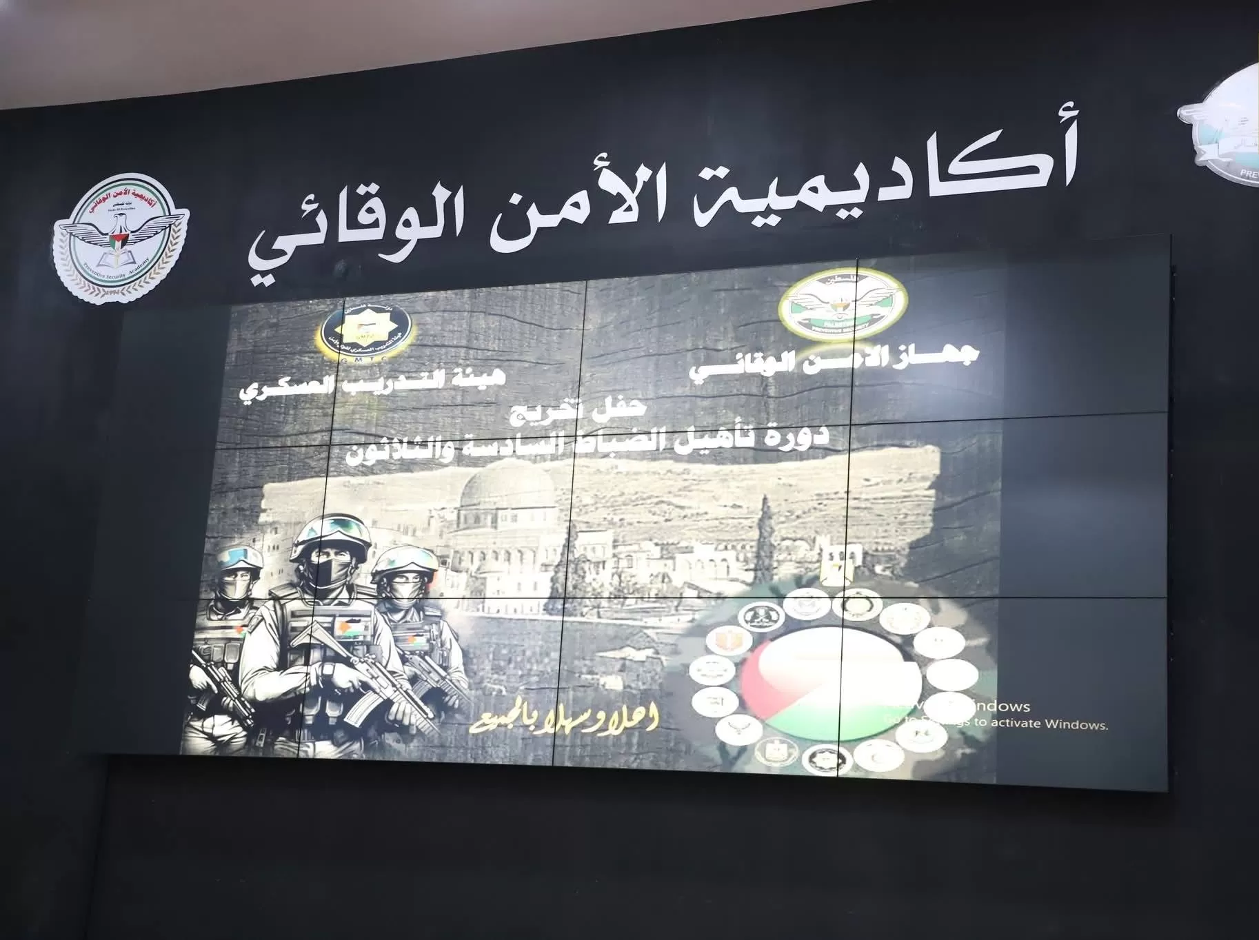 وجرى الحفل بحضور مدير عام جهاز الأمن الوقائي اللواء إياد الأقرع "أبو الفاتح"، ومدير إدارة التدريب والتخطيط العميد محمد زكارنة "أبو جهاد"، إلى جانب عطوفة محافظ محافظة أريحا والأغوار الدكتور حسين حمايل، واللواء محمود أبو هارون رئيس هيئة التدريب العسكري، وقيادات الأجهزة الأمنية في المحافظة.