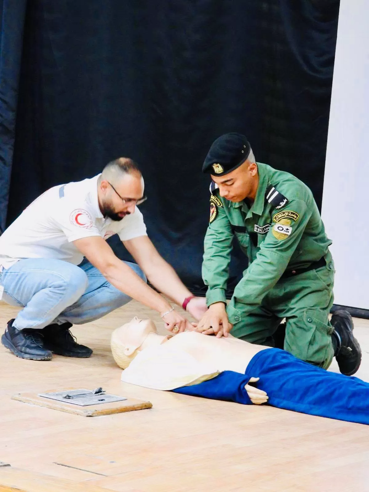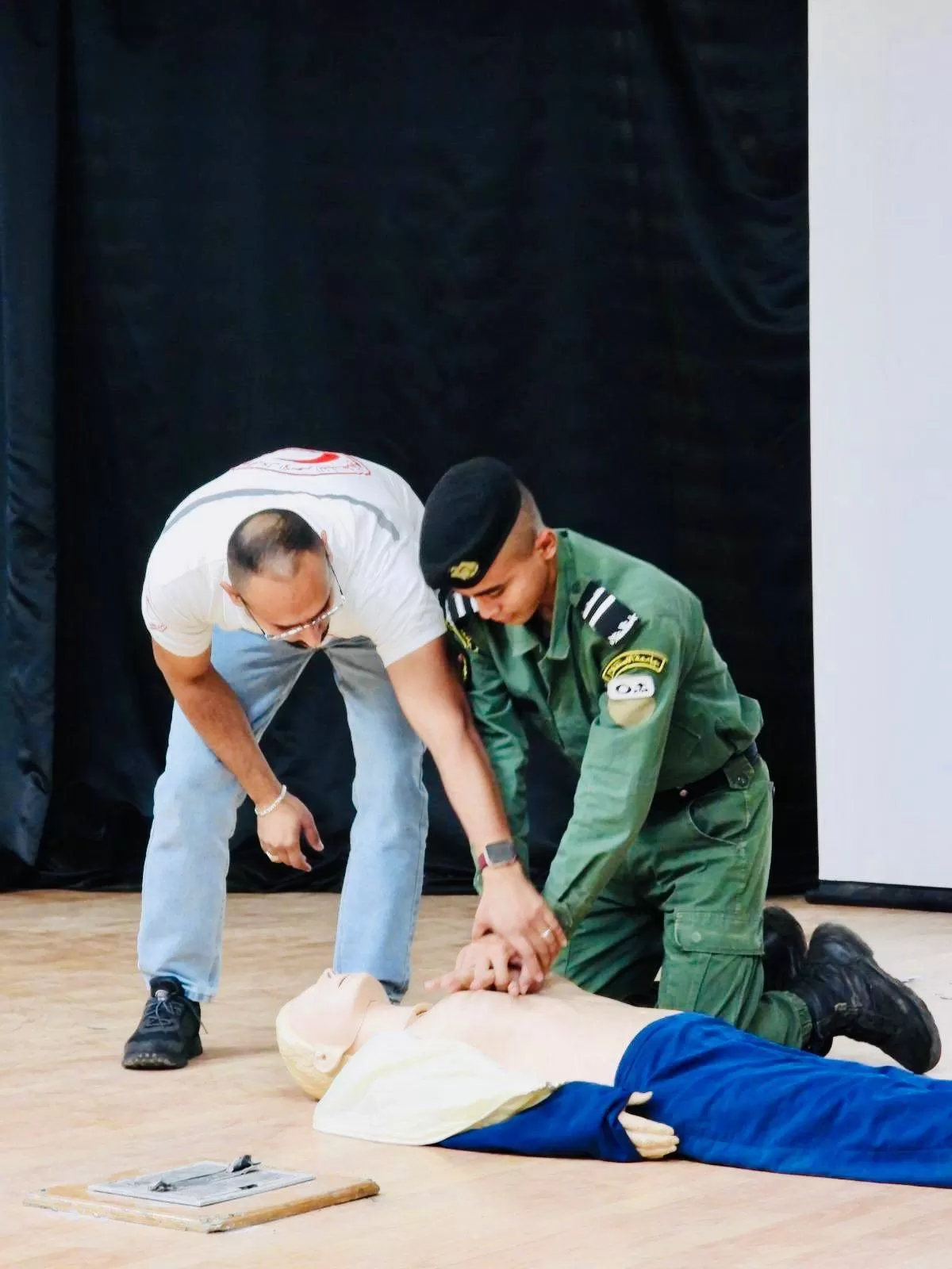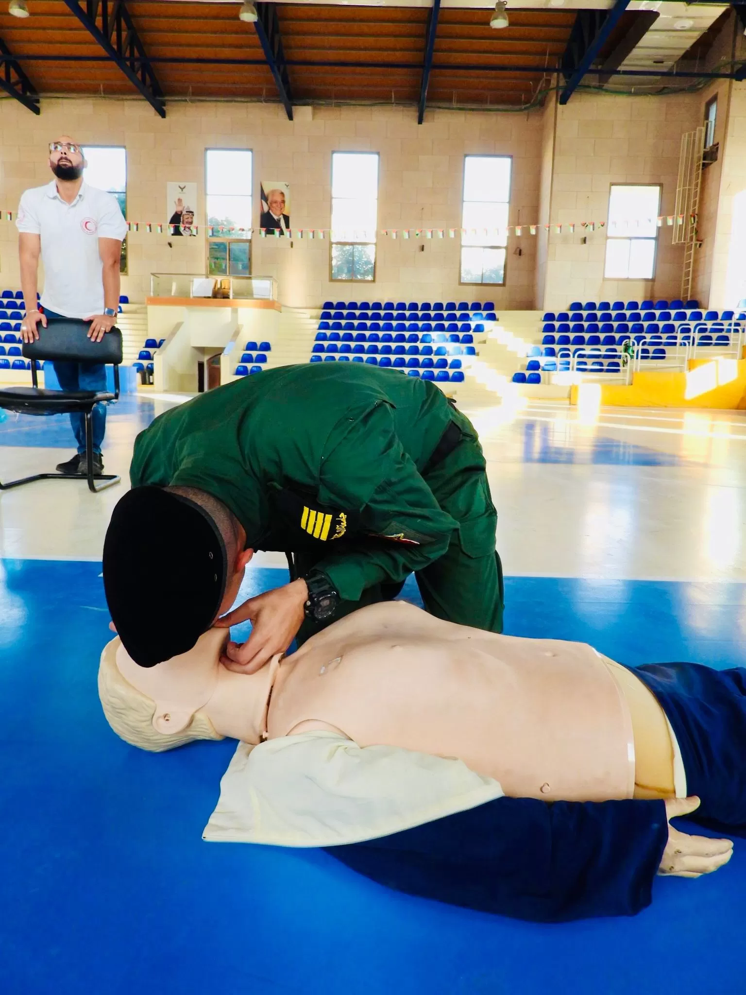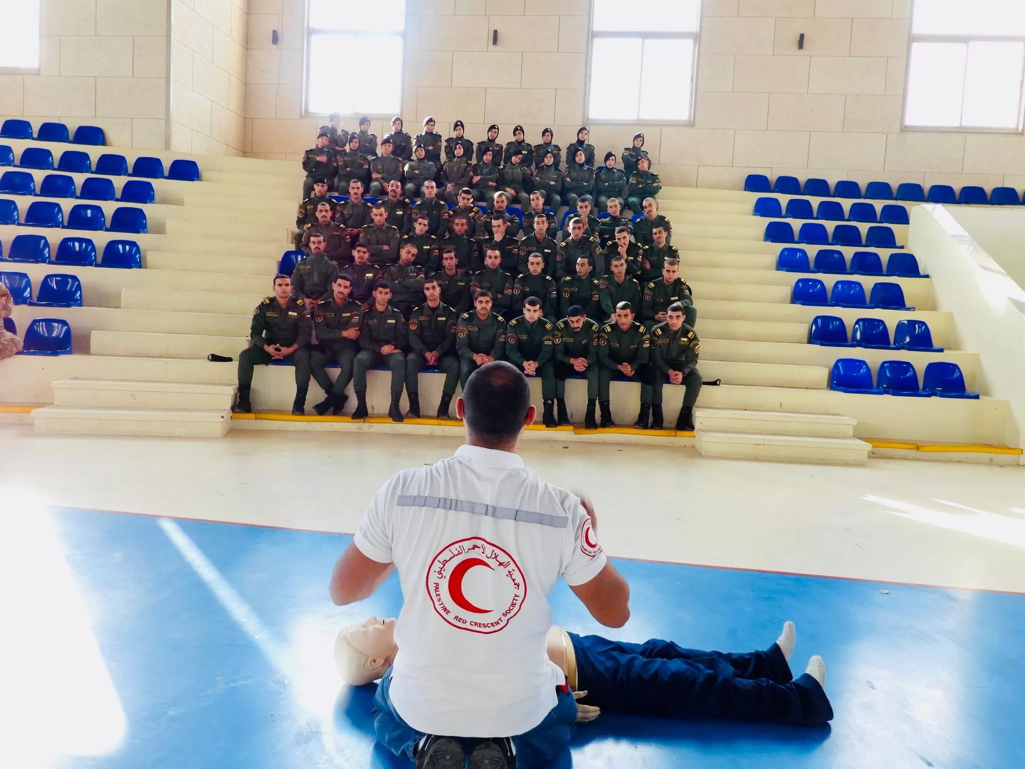 ضمن حرصها على سلامة وكفاءة طلبتها نظم الجانب العسكري في جامعة الاستقلال، ورشة عمل تدريبية توعوية هامة حول الإسعاف الأولي للطلاب، بإشراف المدرب محمد رياض الياسيني المختص بتدريب الاسعاف والطورائ ومنسق المتطوعين و العمل التطوعي في جمعية الهلال الاحمر الفلسطيني محافظة أريحا و الاغوار ،ومساعده علي الياسيني