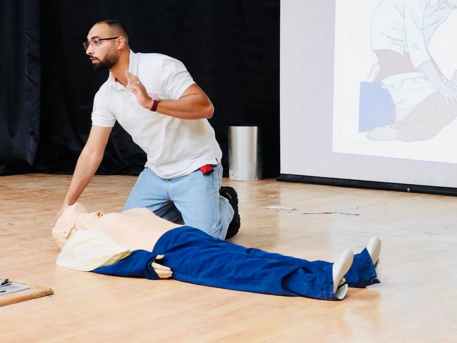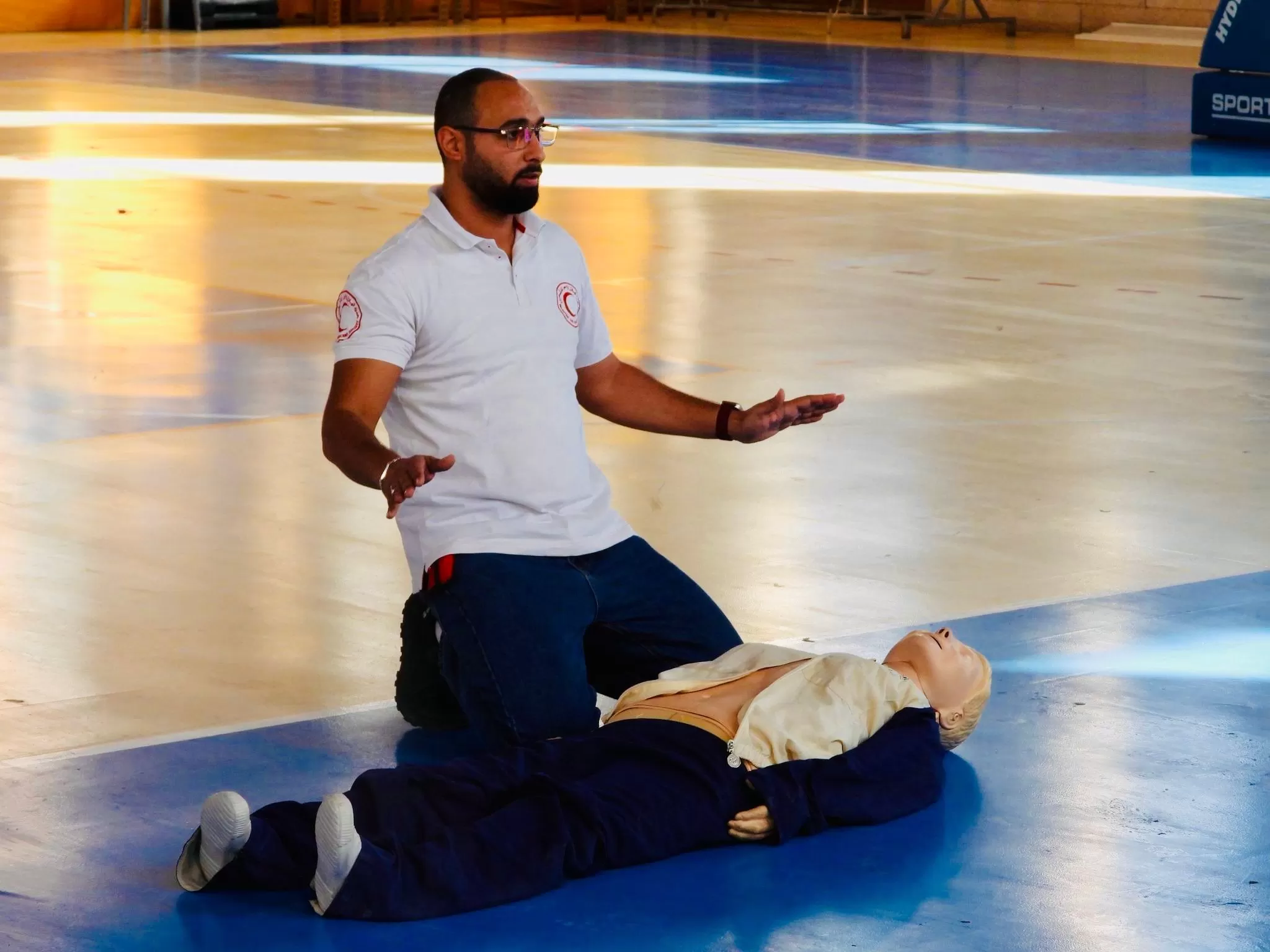 حيث تركزت ورشة العمل التدريبية على محاور أساسية لتقديم المساعدة الفورية والفعالة في الحالات الطارئة الإنعاش القلبي الرئوي ( CPR) للتدريب على خطوات الضغط الصحيحة ومنح أنفاس الإنقاذ، تحديد أنواع النزيف وإجراءات التعامل معه، و التعامل مع الكسور وكيفية تثبيت الإصابة وتقديم الإسعافات المناسبة، والحروق المختلفه وخطوات ودرجات التعامل، وجروح الجلد والإجراءات السريعة والمهمة للتعقيم والتغطية.