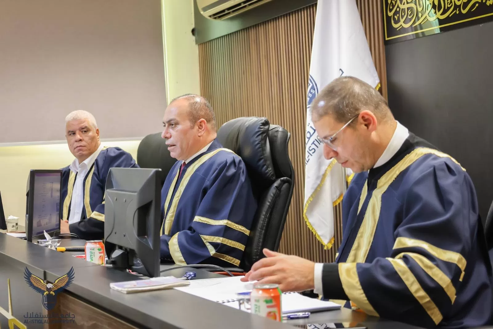 وتكونت لجنة المناقشة من د. صابر العالول ( مشرفاً )، و د. محمد بدوسي (ممتحناً داخلياً)، و د. فادي ربايعة (ممتحناً خارجياً).