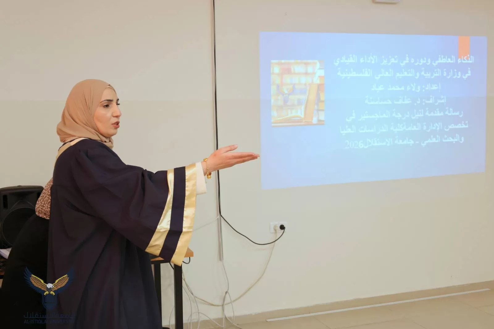 مناقشة رسالة ماجستير حول الذكاء العاطفي ودوره في تعزيز الاداء القيادي في وزارة التربية والتعليم في فلسطين