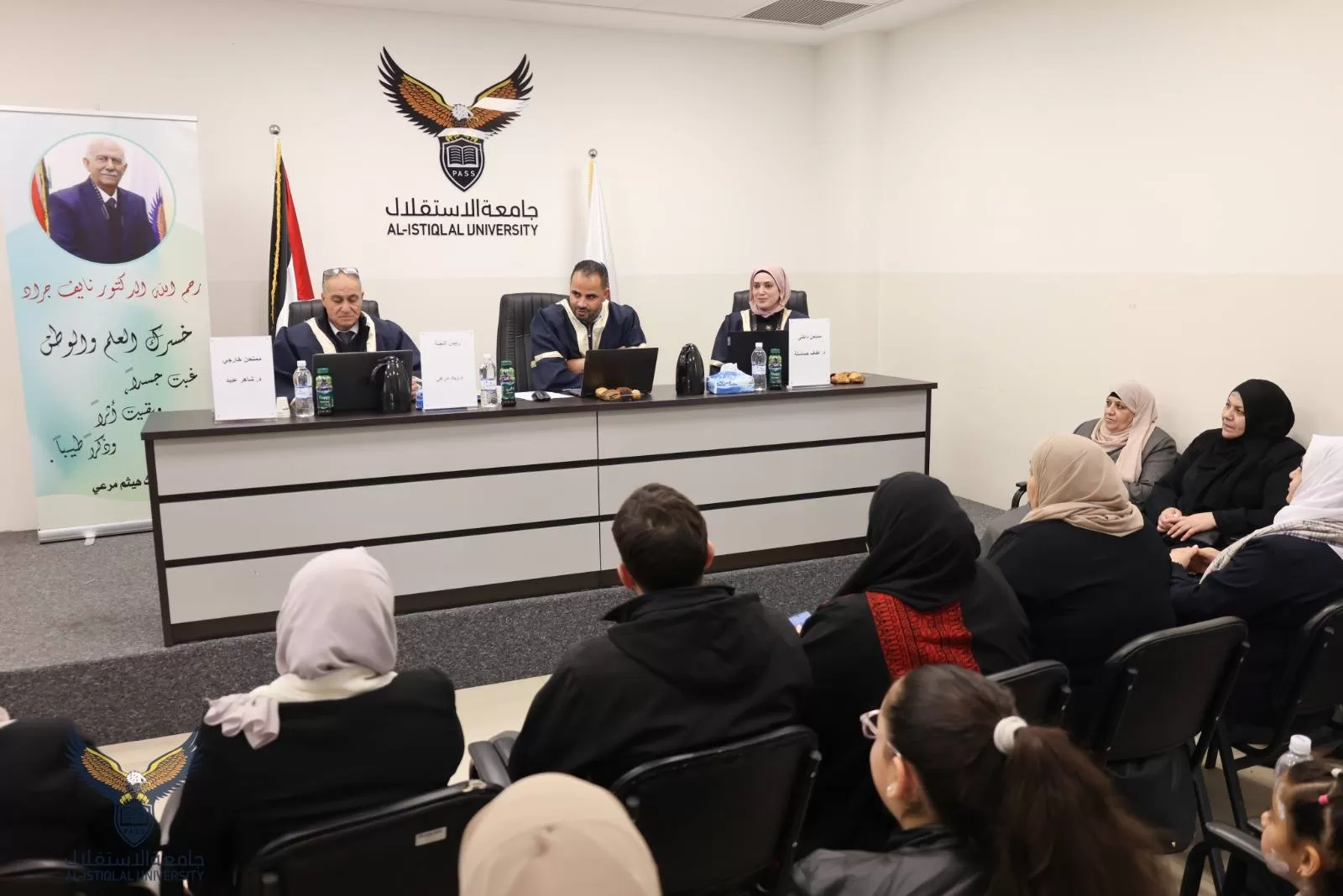 وتكونت لجنة المناقشة من د. .زياد شرقاوي (مشرفاً )، و د. عفاف حساسنة (ممتحناً داخلياً)، و د. شاهر عبيد(ممتحناً خارجياً).