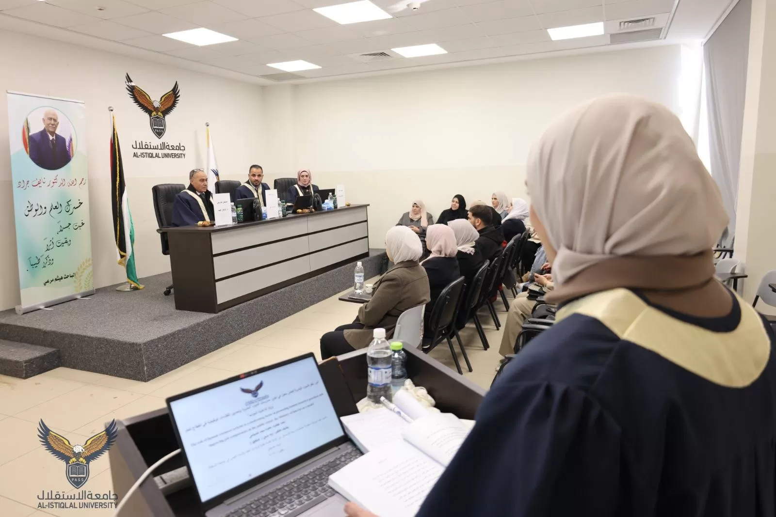 ناقشت كلية الدراسات العليا والبحث العلمي في جامعة الاستقلال اليوم الأحد رسالة ماجستير للطالبة عائشة محمد إسماعيل الصوالحي والموسومة دور نظم الموارد البشرية كعامل معدل في تعزيز ممارسات الموارد البشرية وتحسين الكفاءات الوظيفية في القطاع العام وزارة الداخلية انموذجا