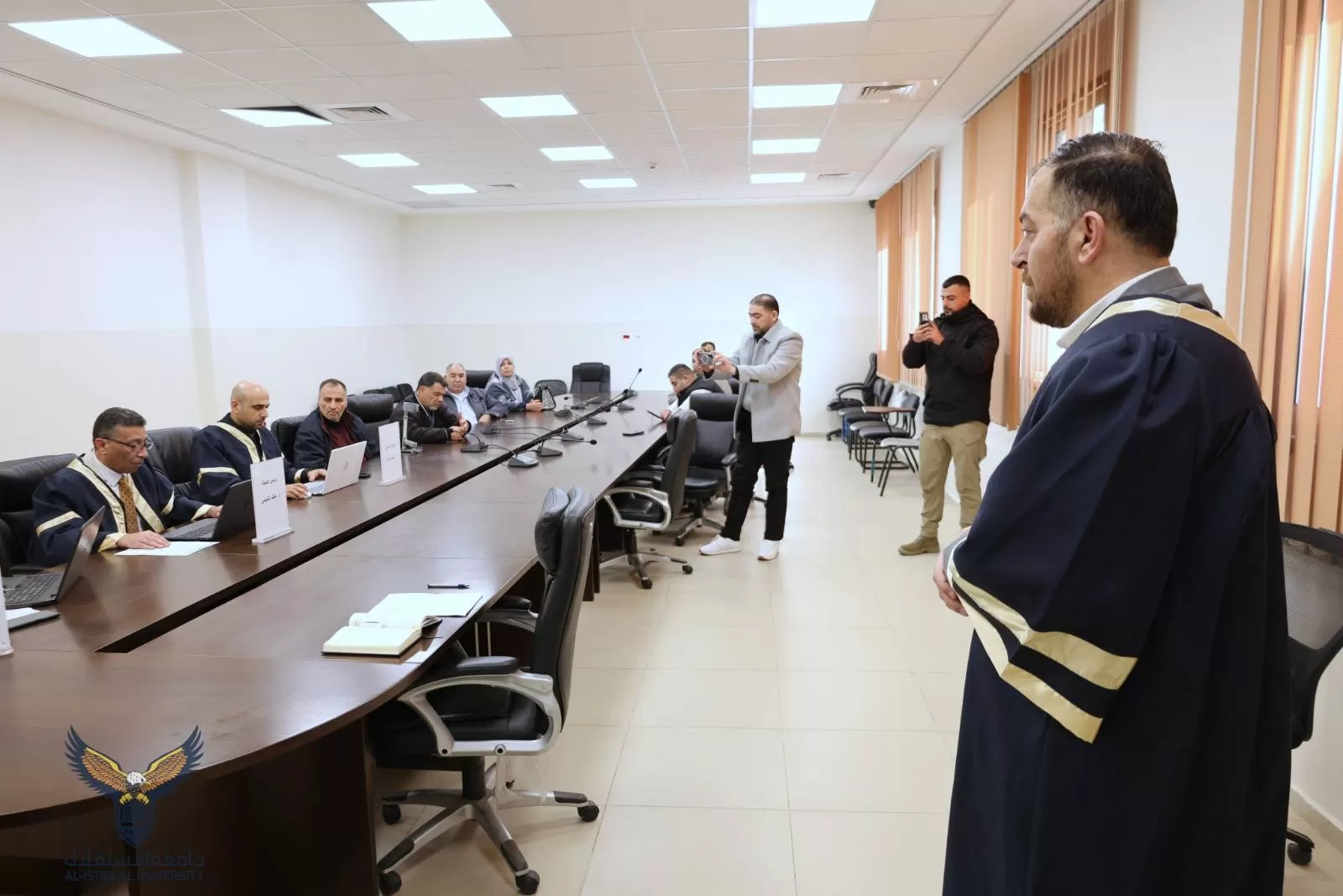وتكونت لجنة المناقشة من د. هيثم التميمي (مشرفاً) و د. محمد الكرم (ممتحناً داخلياً)، و د. سمير الجمل (ممتحناً خارجياً) .