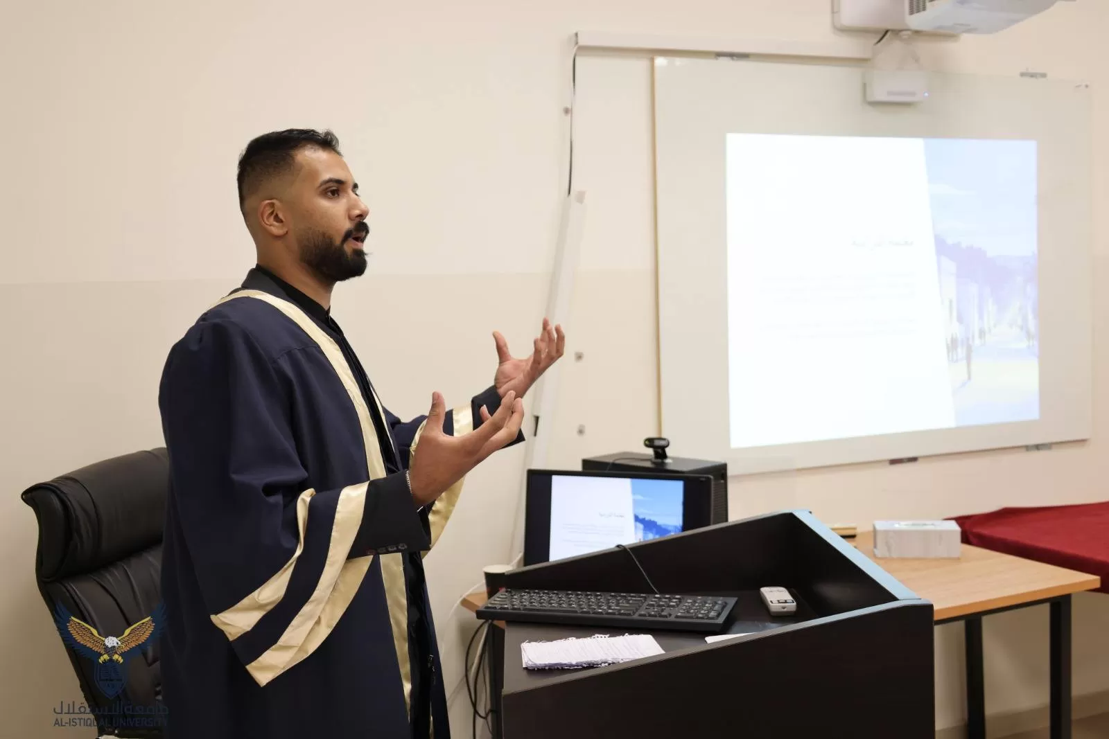 ناقشت كلية الدراسات العليا والبحث العلمي في جامعة الاستقلال اليوم الإثنين رسالة ماجستير للطالب عريب براهمة والموسومة أزمة الكهرباء في محافظة أريحا مقاربة تحليلية للأثار ومدى رضا الفئات الاقتصادية والاجتماعية عن خدمات شركة الكهرباء