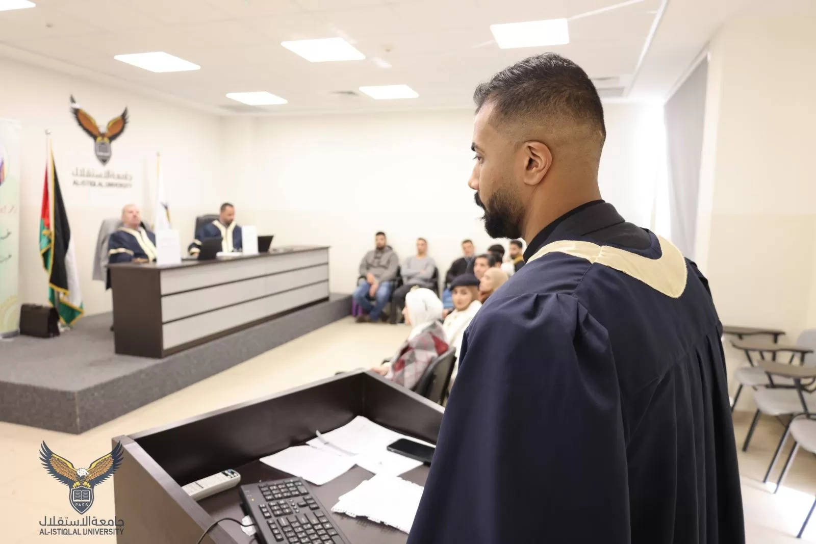 وفي الختام، أشادت اللجنة بجهود الباحث وبعرضه المتميز لموضوع الدراسة، وأوصت بنجاحه بعد الأخذ بعين الاعتبار الملاحظات اللازمة، لإثراء الجانب البحثي في الدراسة.