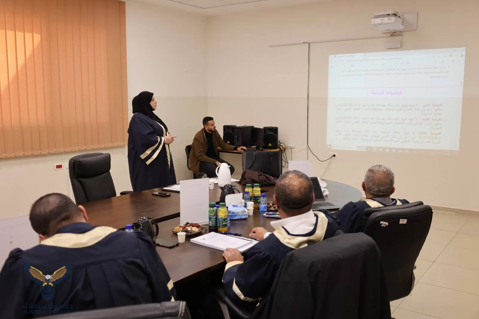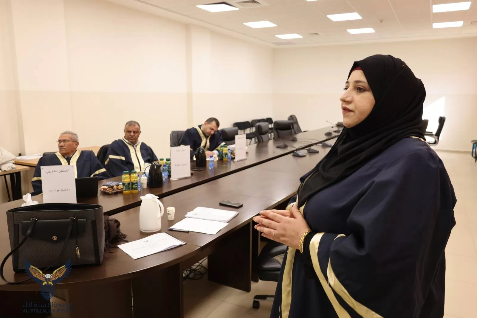 ناقشت كلية الدراسات العليا والبحث العلمي في جامعة الاستقلال اليوم الثلاثاء رسالة ماجستير للطالبة مها محمد الصوالحي والموسومة دور إدارة رأس المال النفسي للإداريين العاملين في مديريات التربية والتعليم في تحقيق الرضا الوظيفي