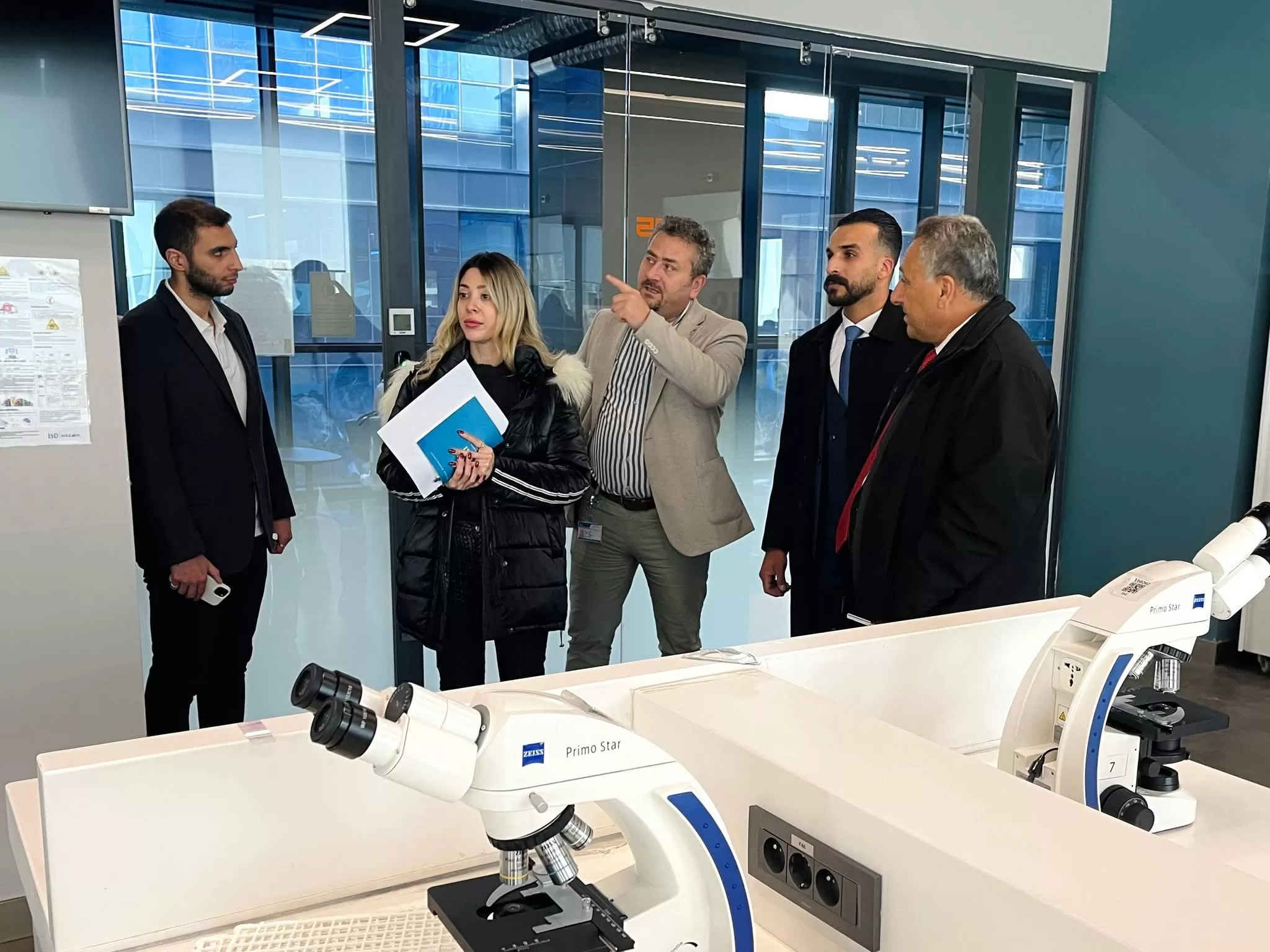 كما قام وفد جامعة الاستقلال بجولة تعريفية في مرافق جامعة إستينيا، برفقة الدكتور محمد مصطفى تشيتين مدير دائرة البحث والتطوير في الجامعة، اطلع خلالها على البنية التحتية التعليمية والبحثية المتقدمة التي تتميز بها الجامعة، والتي تشمل مكتبات متعددة الطوابق تضم مصادر علمية وبحثية واسعة، ومختبرات متخصصة في مجالات الصيدلة والهندسة والأبحاث المتقدمة، إضافة إلى قاعات دراسية حديثة ومجهزة بالكامل، ومساحات دراسة وقاعات مؤتمرات، إلى جانب عدد من المراكز البحثية التي تركز على الابتكار والبحث والتطوير، الأمر الذي عكس مستوى متقدم من التطور الأكاديمي والتقني، وترك انطباعاً إيجابياً لدى الوفد حول البيئة التعليمية المحفزة التي توفرها الجامعة.
