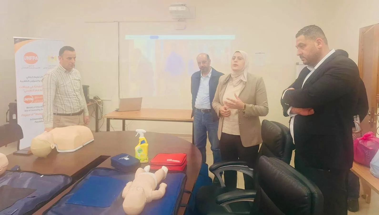 وحضر الورشة القائم باعمال عميد شؤون الطلبة في جامعة الاستقلال الأستاذ باسم قنام، والدكتورة وفاء السعدي ممثلة عن وزارة التربية والتعليم العالي، والأستاذ عمر الشيخ علي مدير دائرة الاسعاف والطوارئ في وزارة الصحة الفلسطينية، والأستاذ سيف الدين علي، و الأستاذ شاهر الناجي مدير دائرة الأنشطة الطلابية، والأستاذة كفاح الغروف رئيسة قسم الانشطة الثقافية في عمادة شؤون الطلبة بالجامعة.