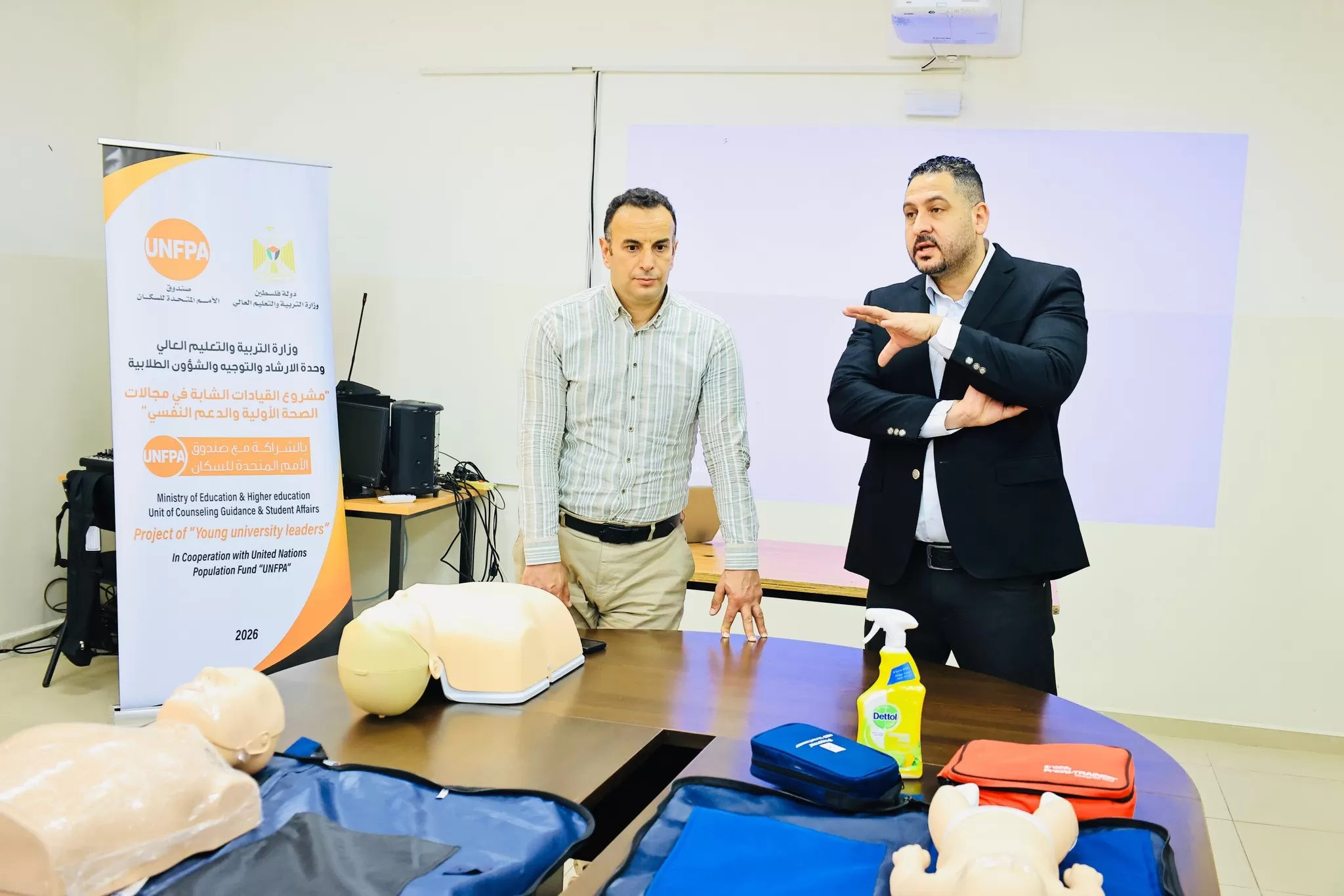 وفي كلمته، رحب الأستاذ باسم قنام بالحضور بإسم رئيس جامعة الاستقلال الأستاذ الدكتور نور الدين ابو الرب، مؤكداً أهمية هذه الورش التدريبية في صقل شخصية الطلبة وبناء قدراتهم في مجالات حيوية تخدم المجتمع الفلسطيني، مشدداً على حرص الجامعة وعمادة شؤون الطلبة على تنظيم مثل هذه الدورات بشكل مستمر، لما لها من دور محوري في تعزيز وعي الطلبة الصحي والنفسي، وتمكينهم من التعامل مع الحالات الطارئة بكفاءة ومسؤولية.